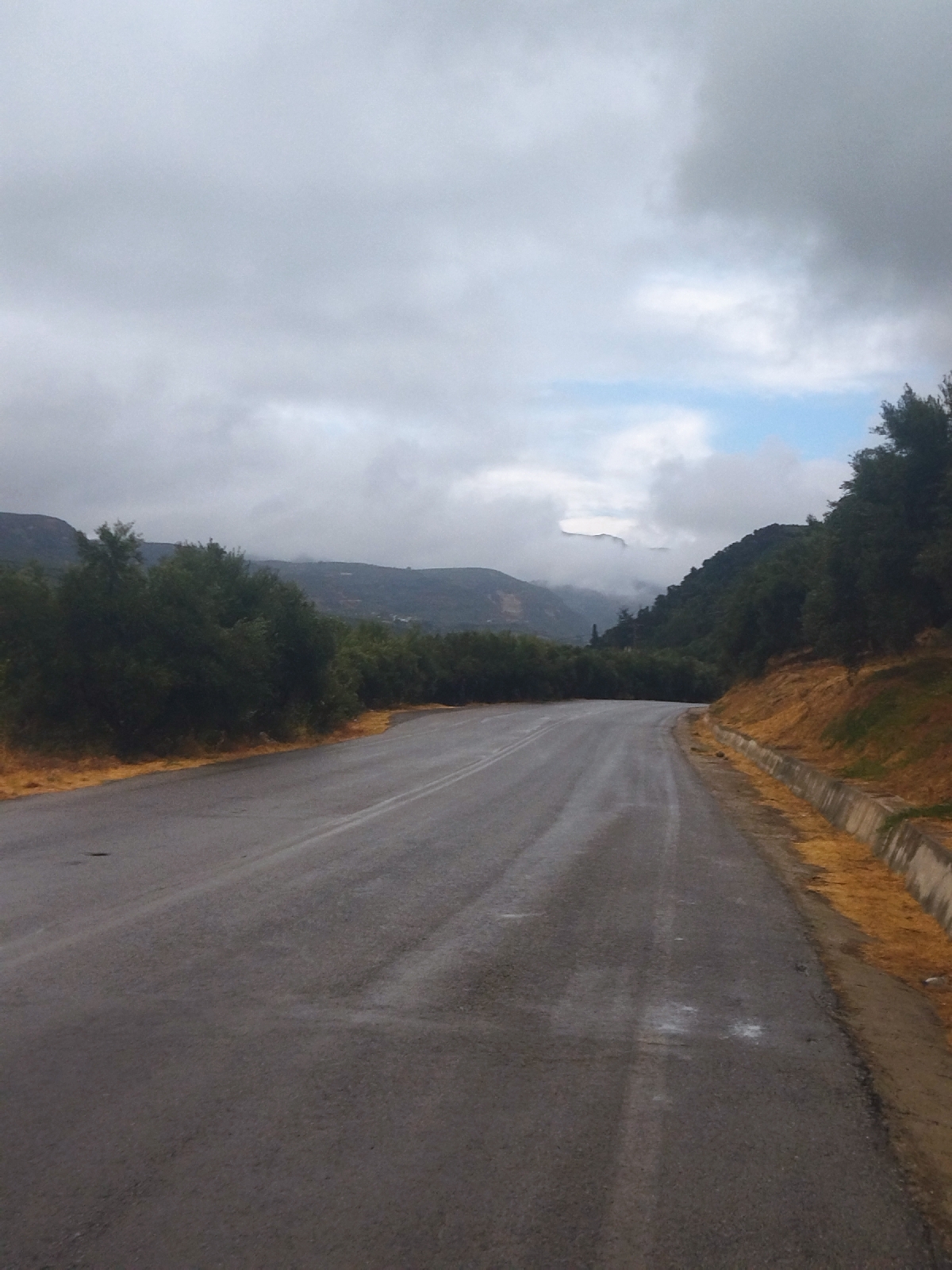 Vite en ville, un café sympa, et tout de suite ça va mieux : capuccino, pain au chocolat, toilettes. Ahhh. La pluie s'arrête et je vais traverser l'île nord-sud. Et bien ce n'est pas plat, mais pas du tout.